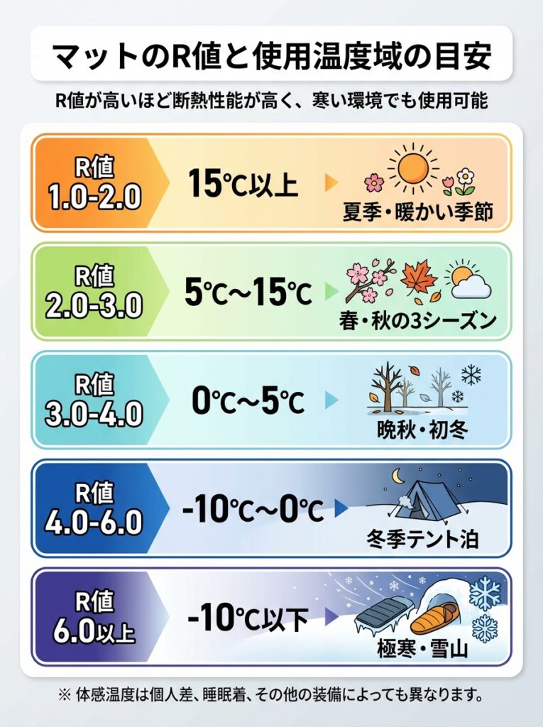 使用する温度域に合わせたR値(マットの暖かさ)