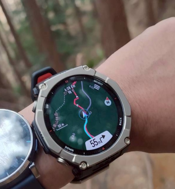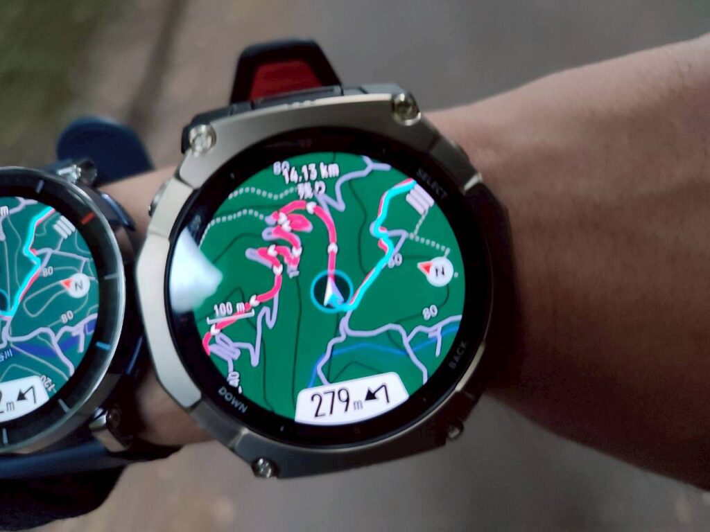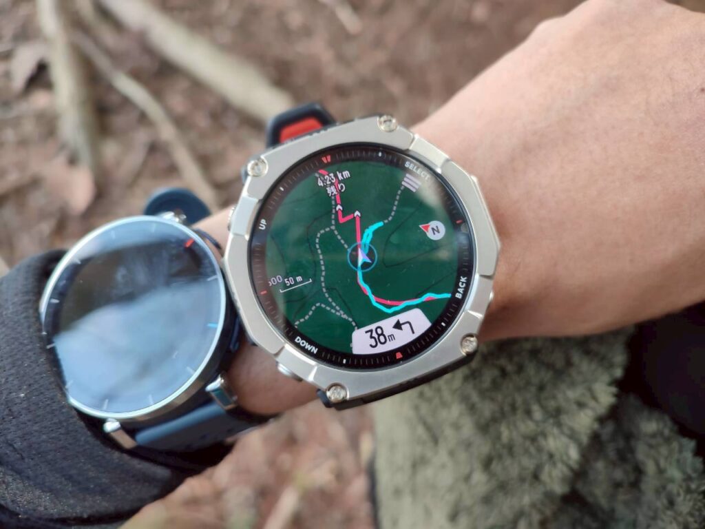 T-Rex 3 Ultra2では事前にルートデータを入れておけば、腕時計の画面上でルートを確認しながら歩けます。